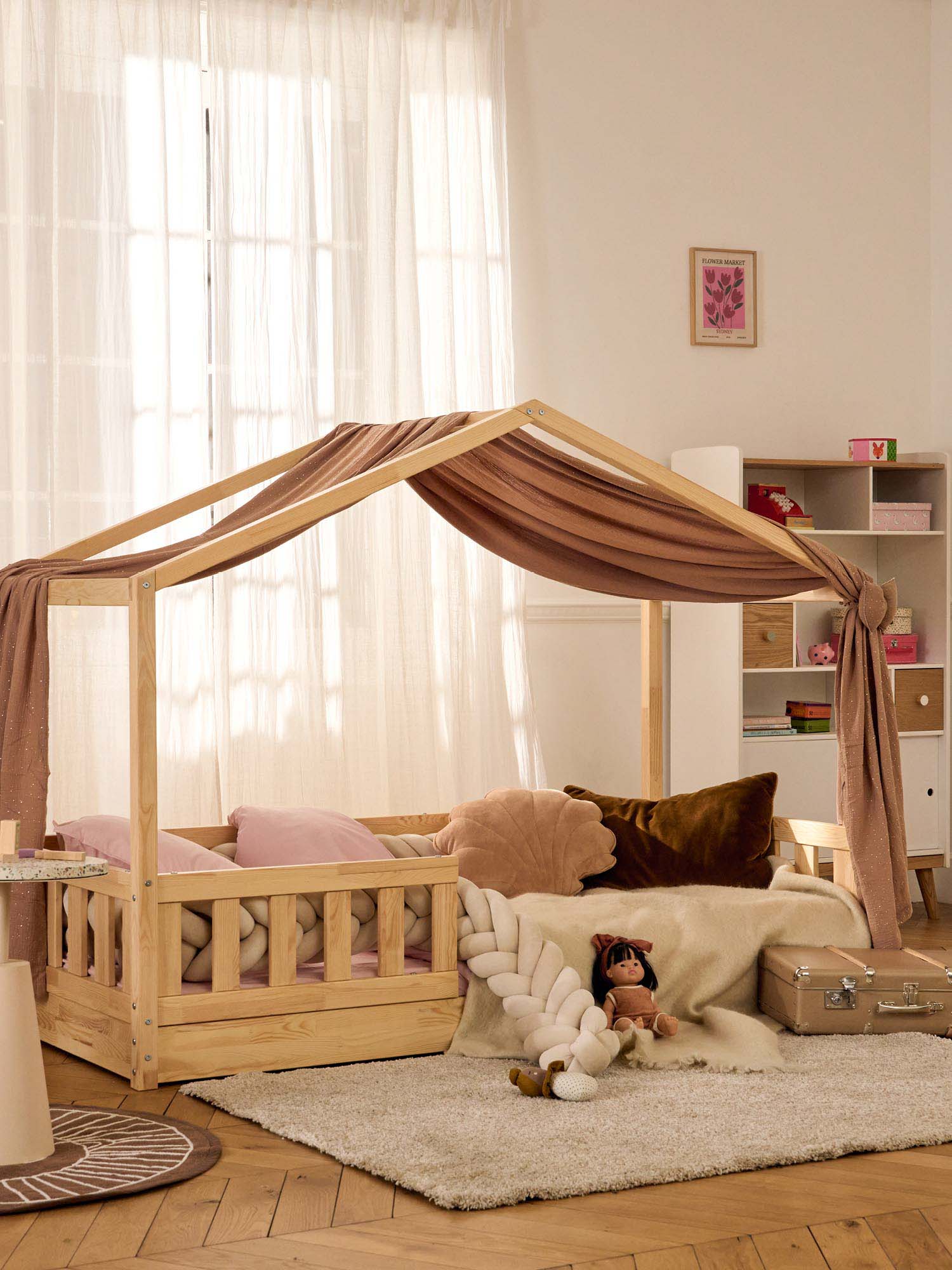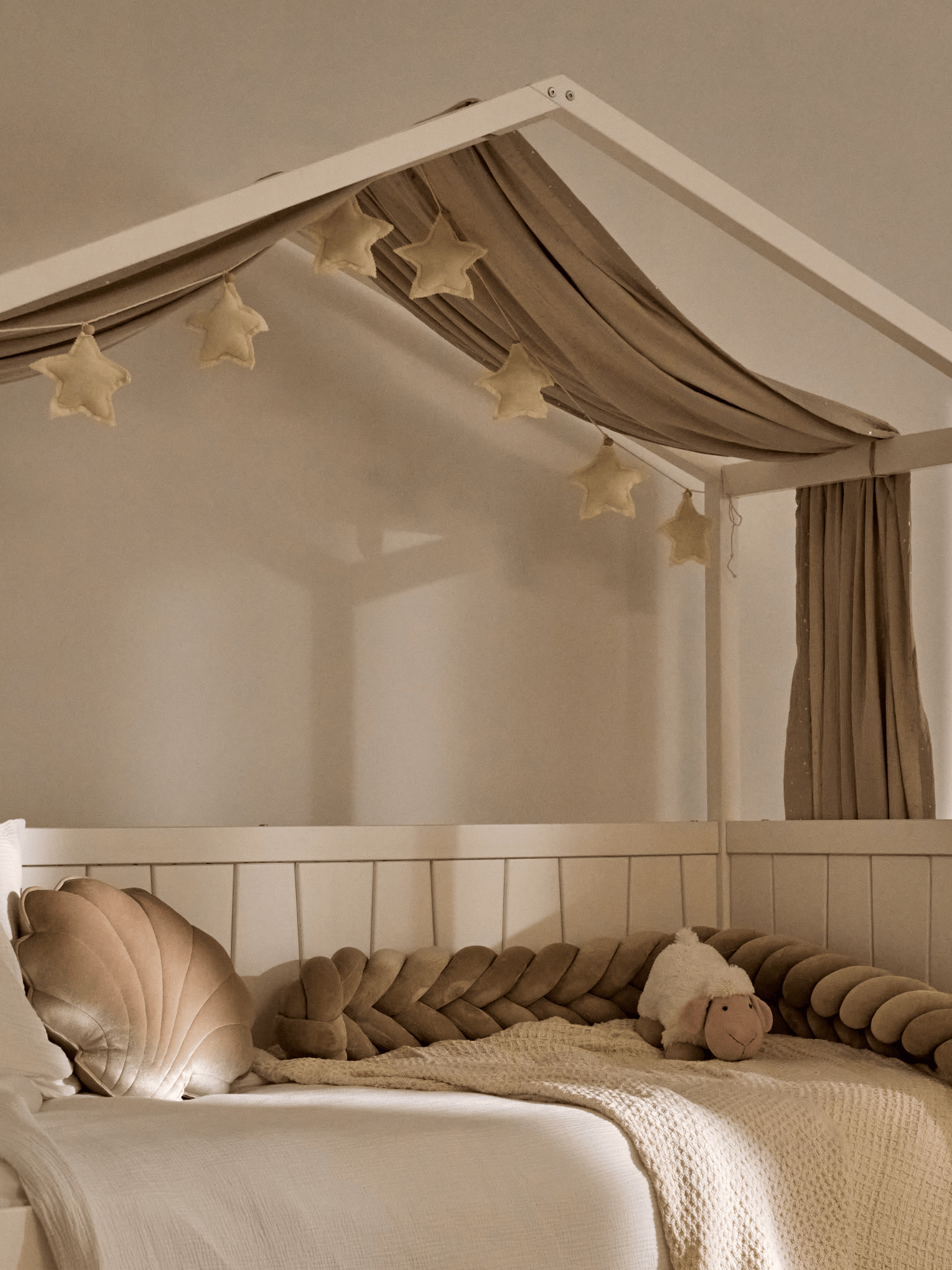 An eco-friendly handmade textile, designed to provide your child with a healthy and safe environment. Our OEKO-TEX®-certified fabric guarantees the total absence of harmful substances, protecting children's sensitive skin. Made responsibly, this cabane bed curtain reflects our commitment to the planet and the well-being of future generations.