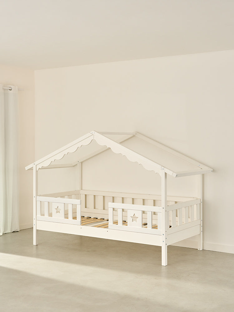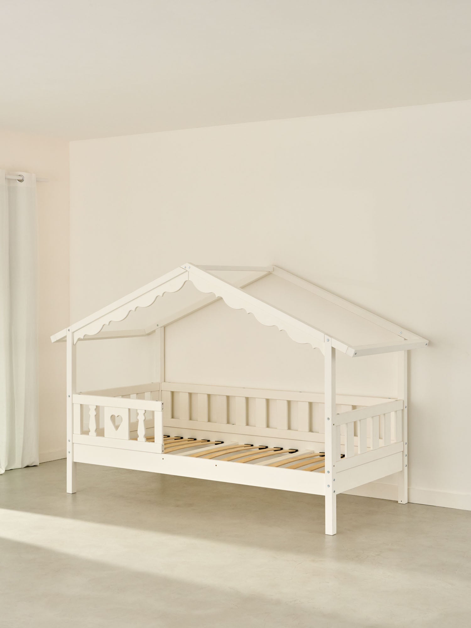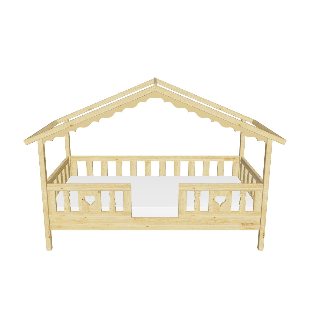 - Increased safety: made from 100% solid pine with meticulous finishing, this bed ensures sturdiness and stability. The "heart" rails add an aesthetic touch while offering extra protection against falls;