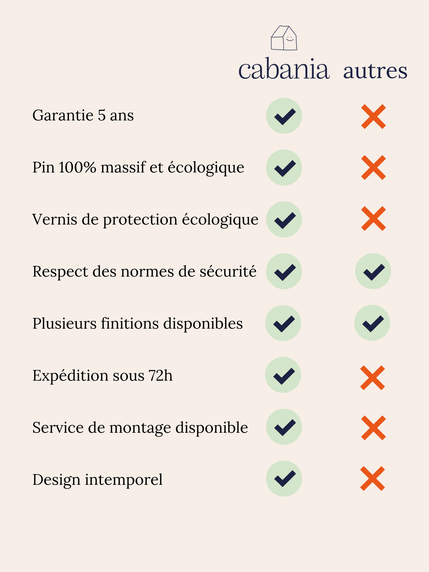 Add our French-made Cabania mattress by selecting the option on the product page! It is specially designed for children's sleep.