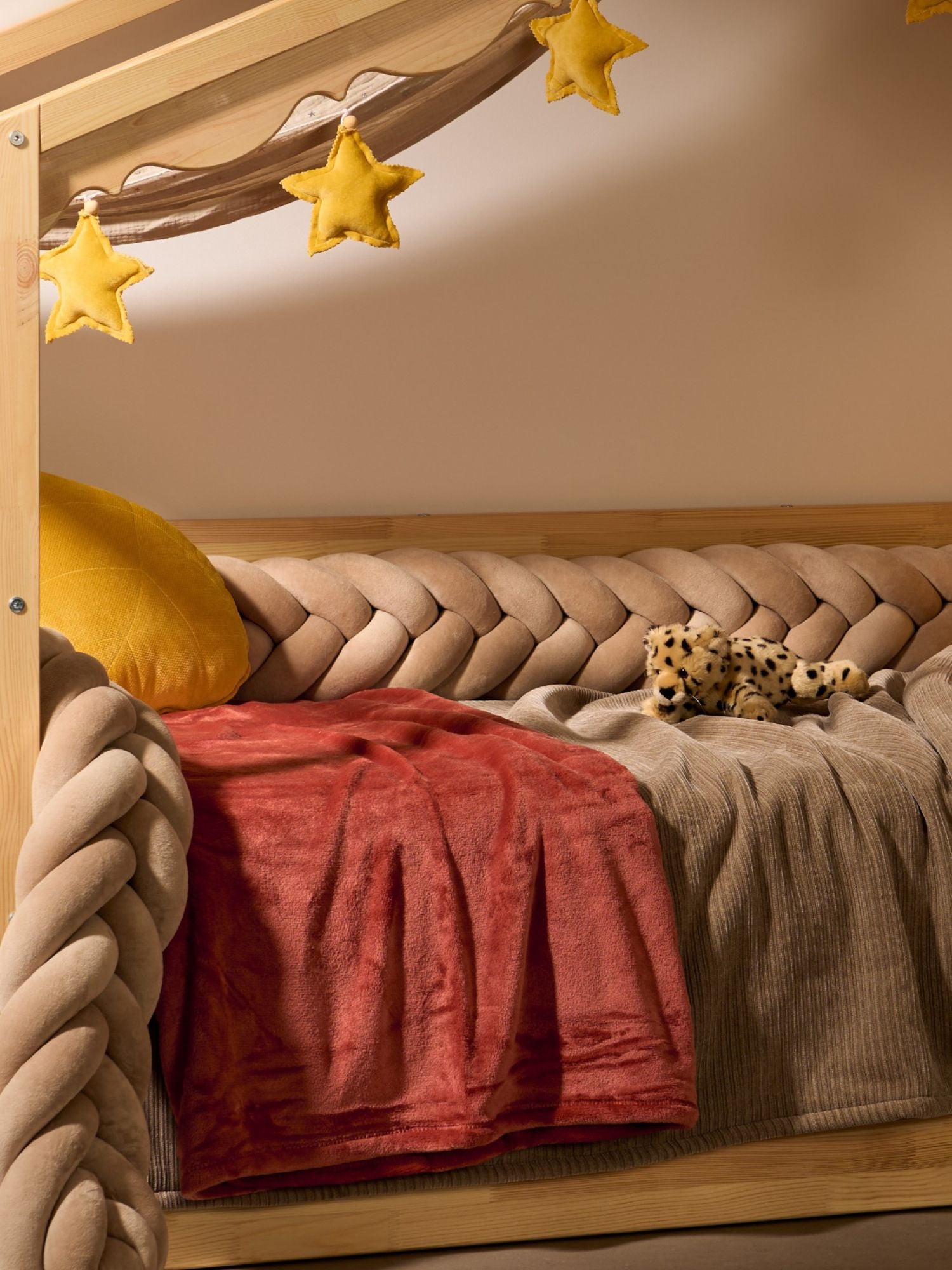 Bed braids are a decorative and functional element that transform your child's cot into a real cocoon. Our velvet crib braid combines softness, aesthetics and protection, creating an environment that's both secure and warm.