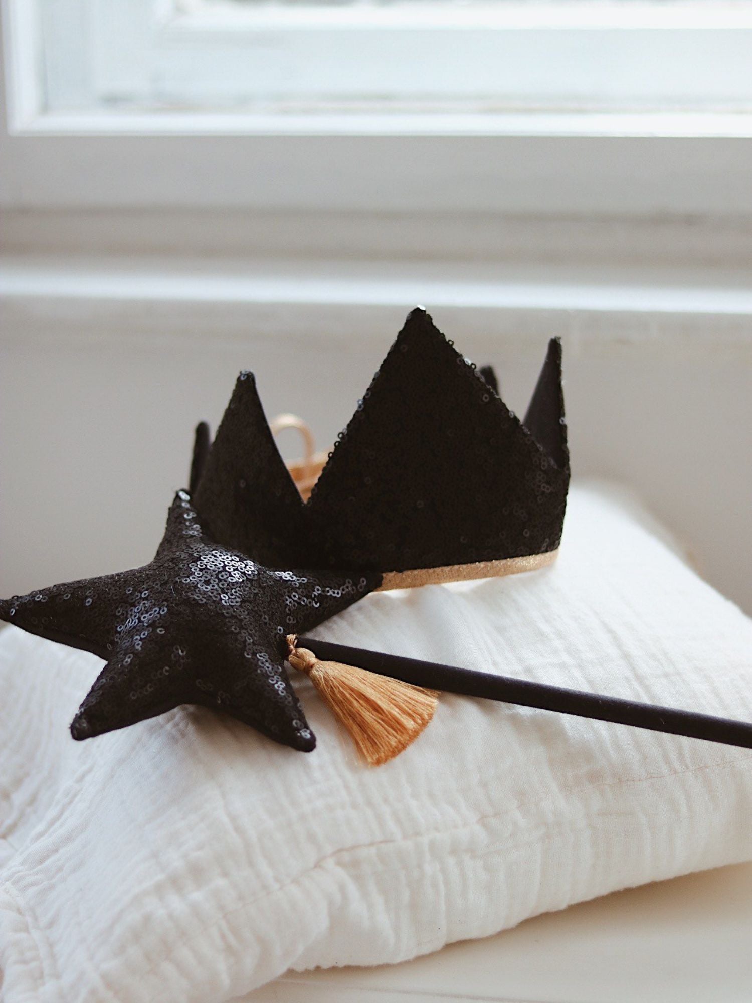 Dimensions : baguette 35 cm de hauteur • couronne 40 cm de longueur (hors rubans)
