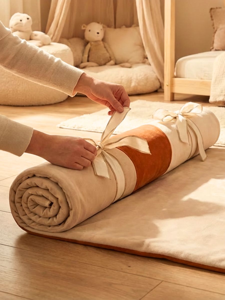 Son atout malin ? Grâce à ses deux rubans intégrés, il se plie facilement pour se transformer en coussin moelleux, idéal pour changer de position ou ranger avec style. Son toucher velours ultra doux, ses couleurs tendance et son design simple en font un élément décoratif aussi pratique qu’esthétique.